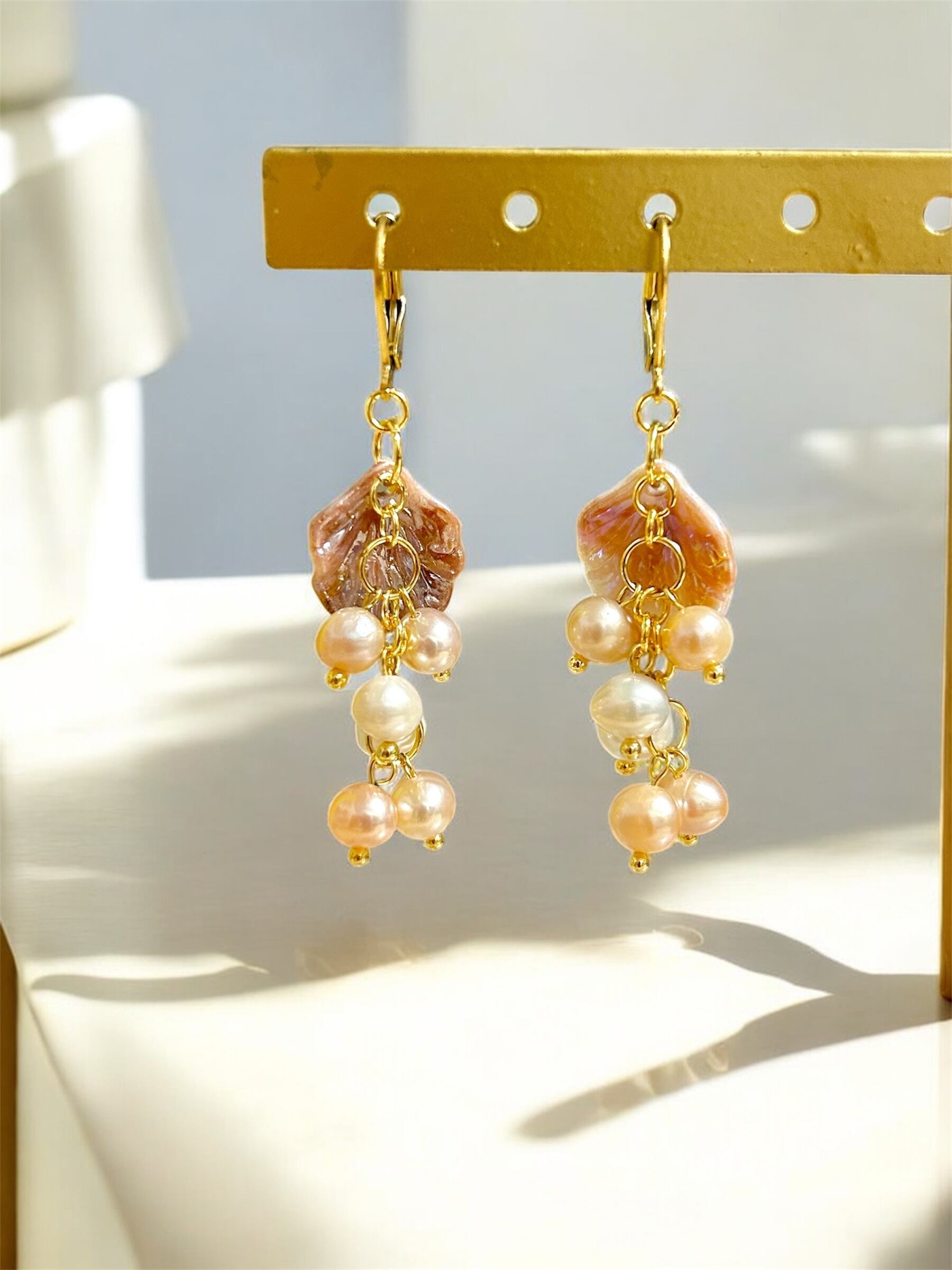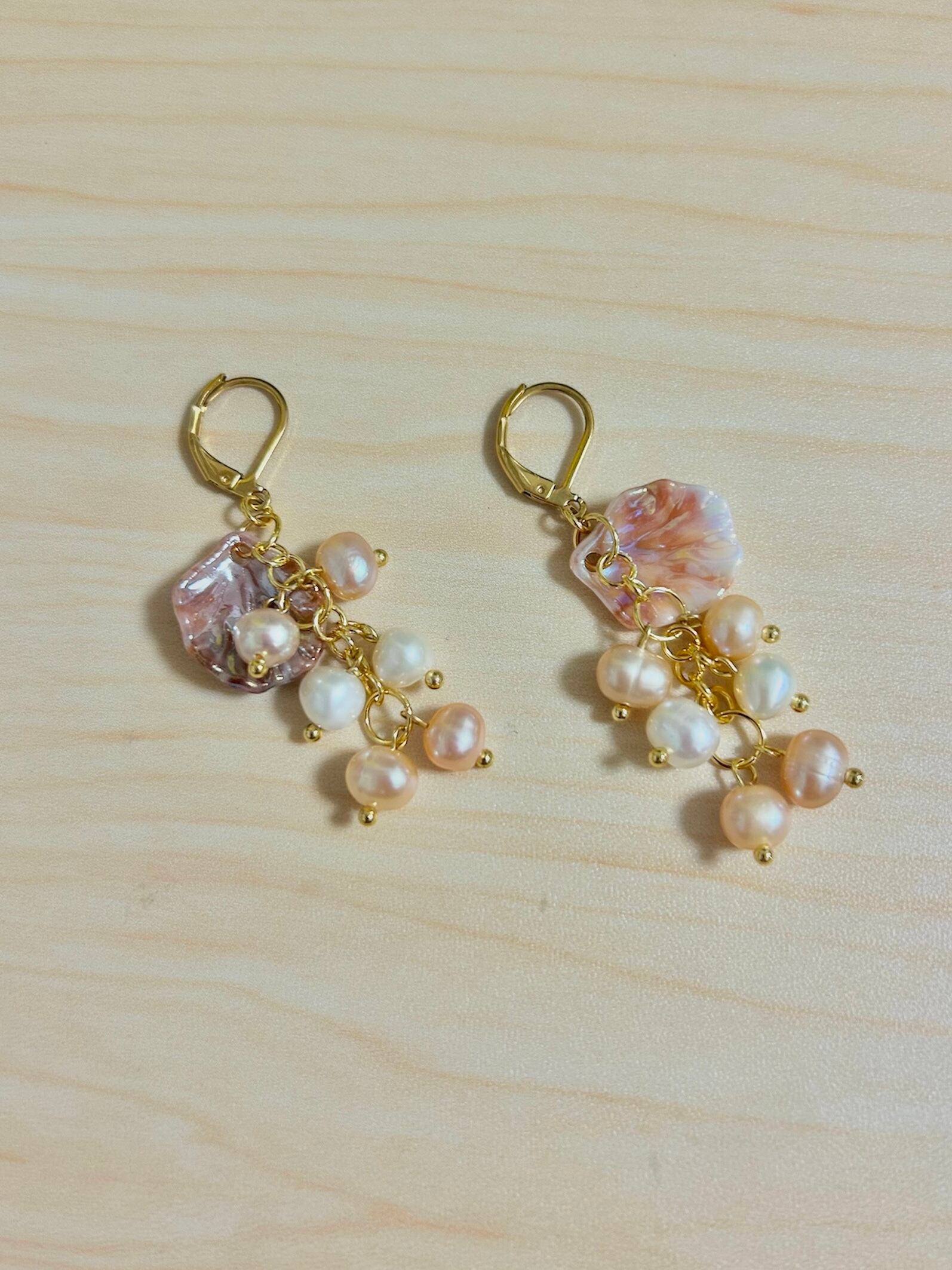 ・光沢のある貝殻チャームを中心に、天然色淡水パールを組み合わせました☆