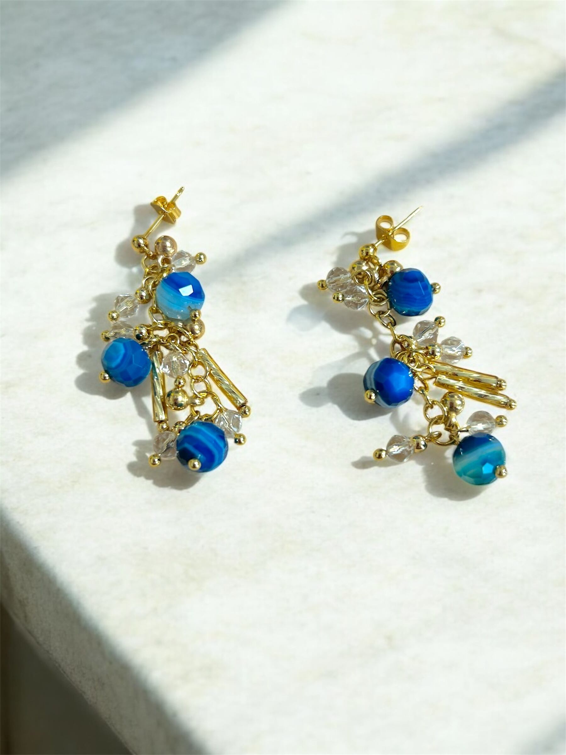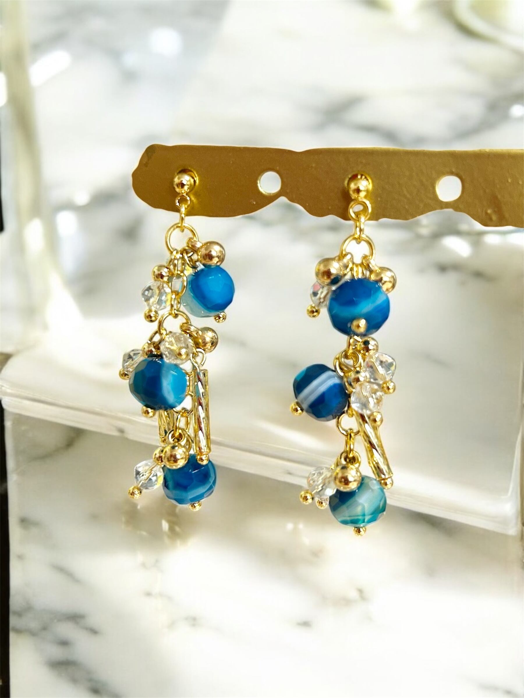 ブルーストライプアゲートデザインジュエリーピアスorイヤリング アレルギー対応