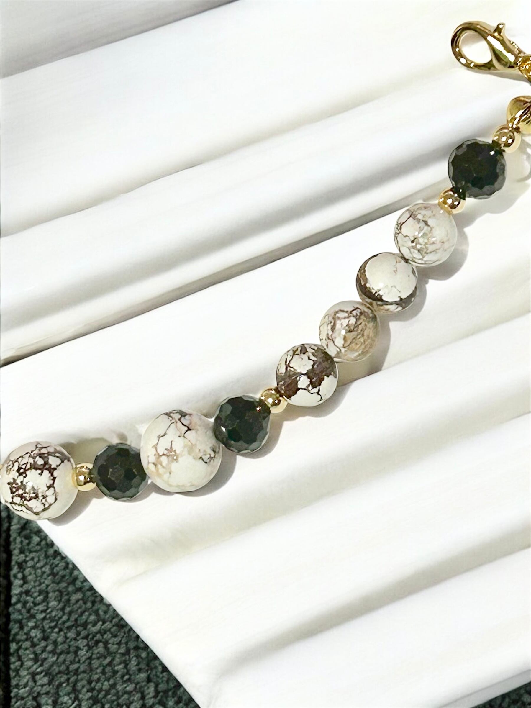 ・希少なワイルドホースと美しい輝きのブラックスピネルを組み合わせたデザインブレスレットになります♪