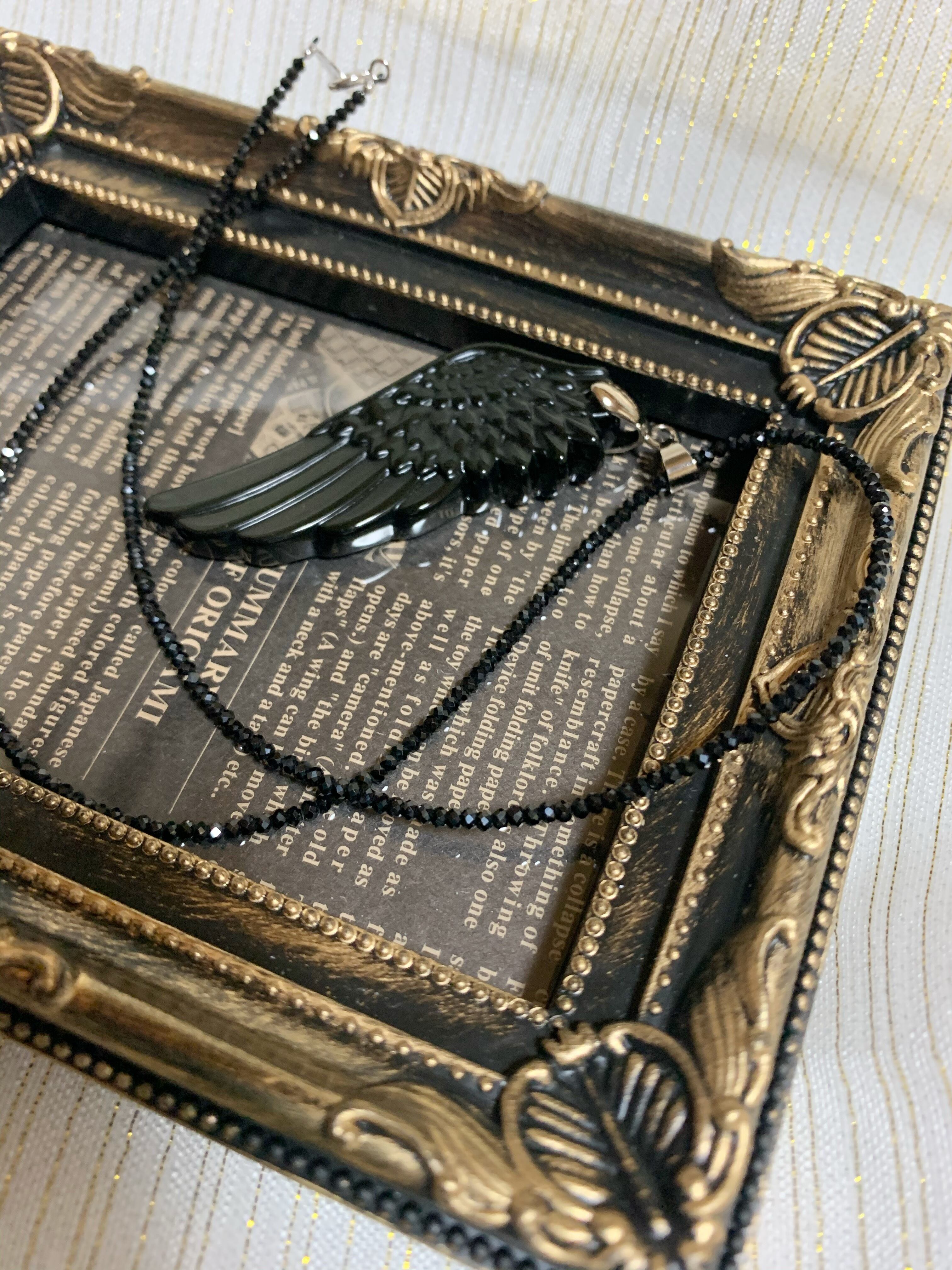 【魔除け トラウマ解消】ブラックスピネル ミカエルの翼オブシディアンネックレス