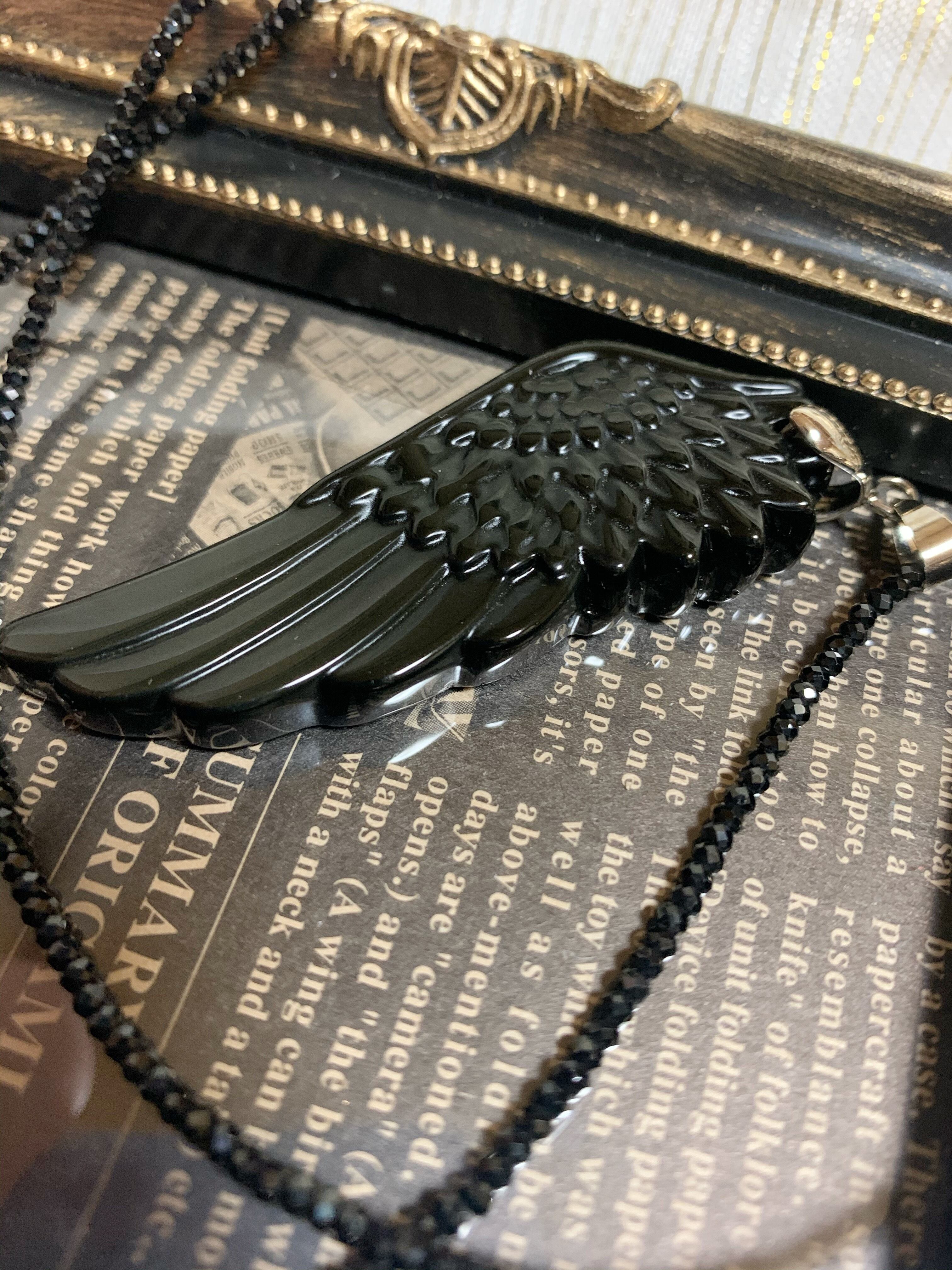 ネックレストップ ミカエルの翼 オブシディアン 天使の羽 彫刻