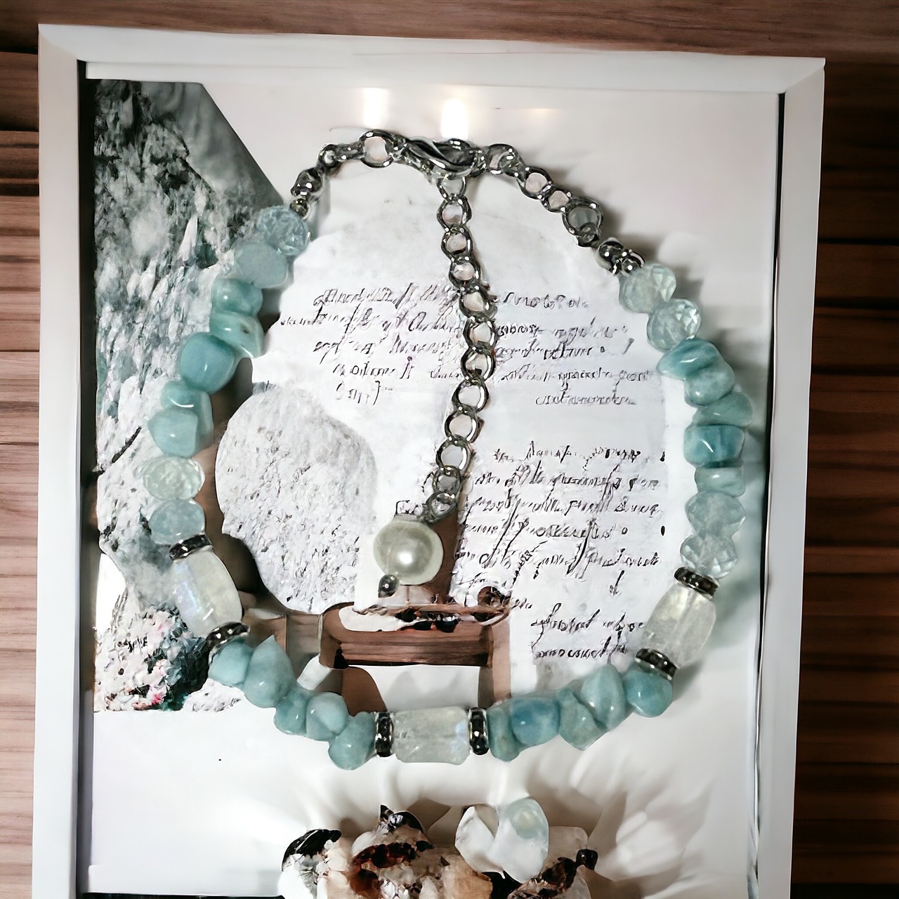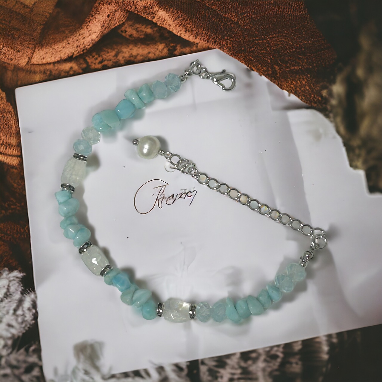 爽やかなお色で揃え、癒しトラウマ解消ヒーリング効果の高い天然石を選びジュエリーに致しました♪