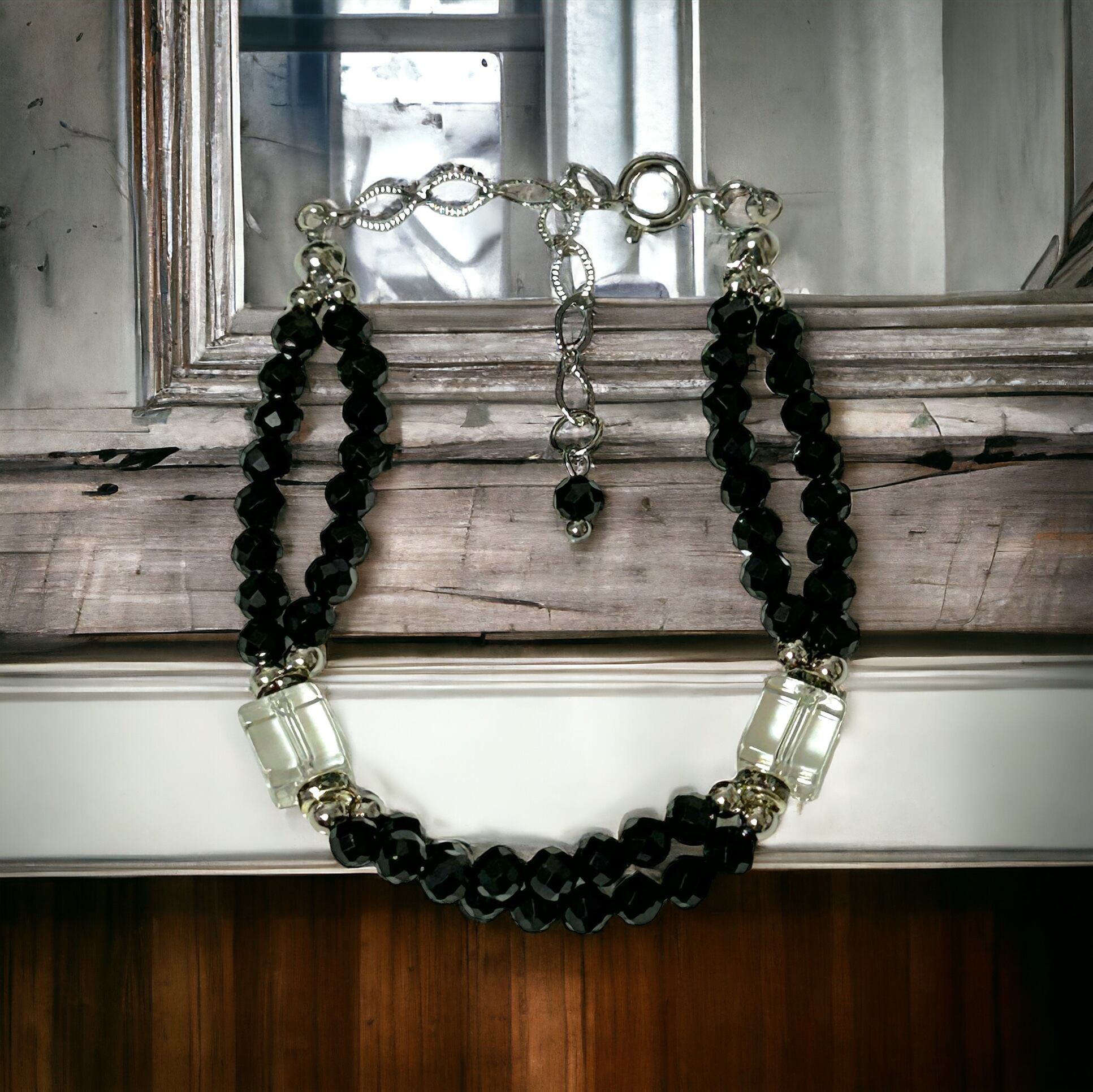 宝石質ブラックスピネル2連デザインジュエリーブレスレット