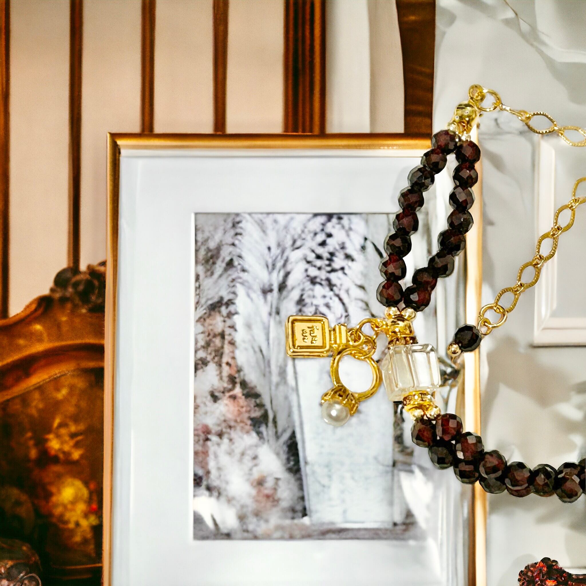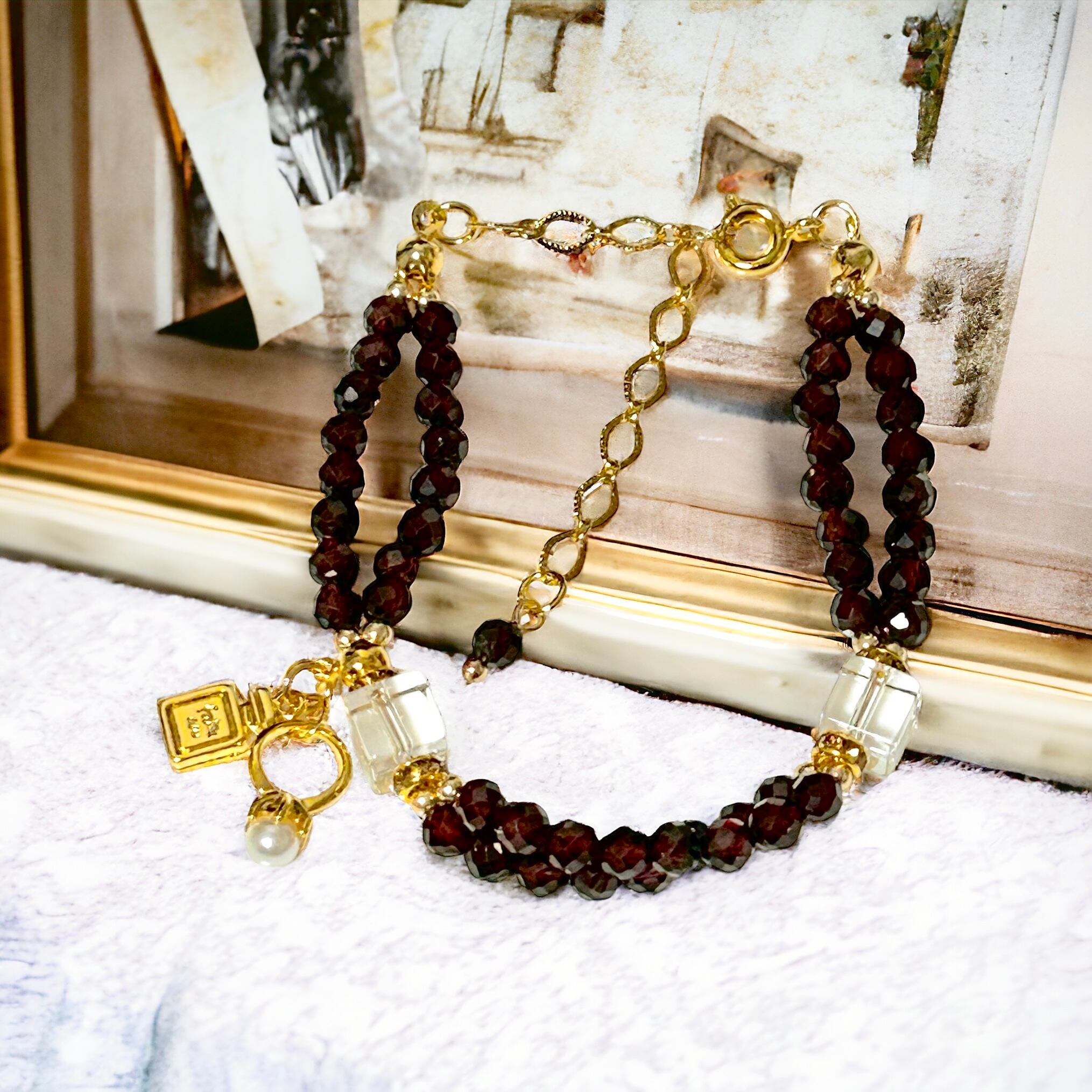 2連宝石質ガーネットデザインジュエリーブレスレット