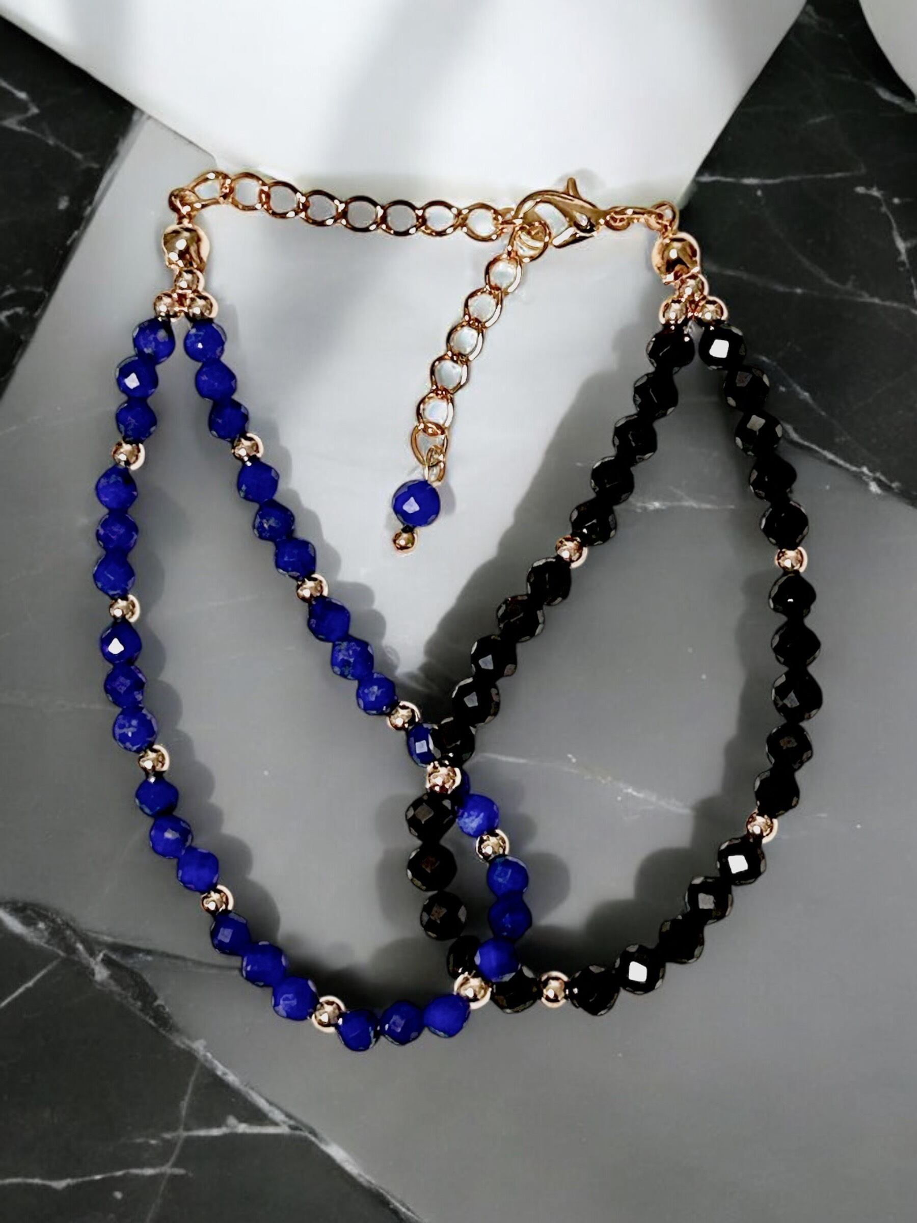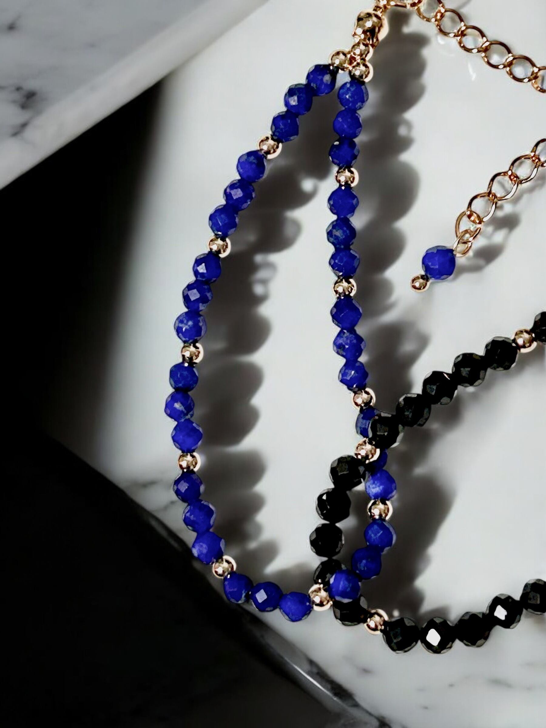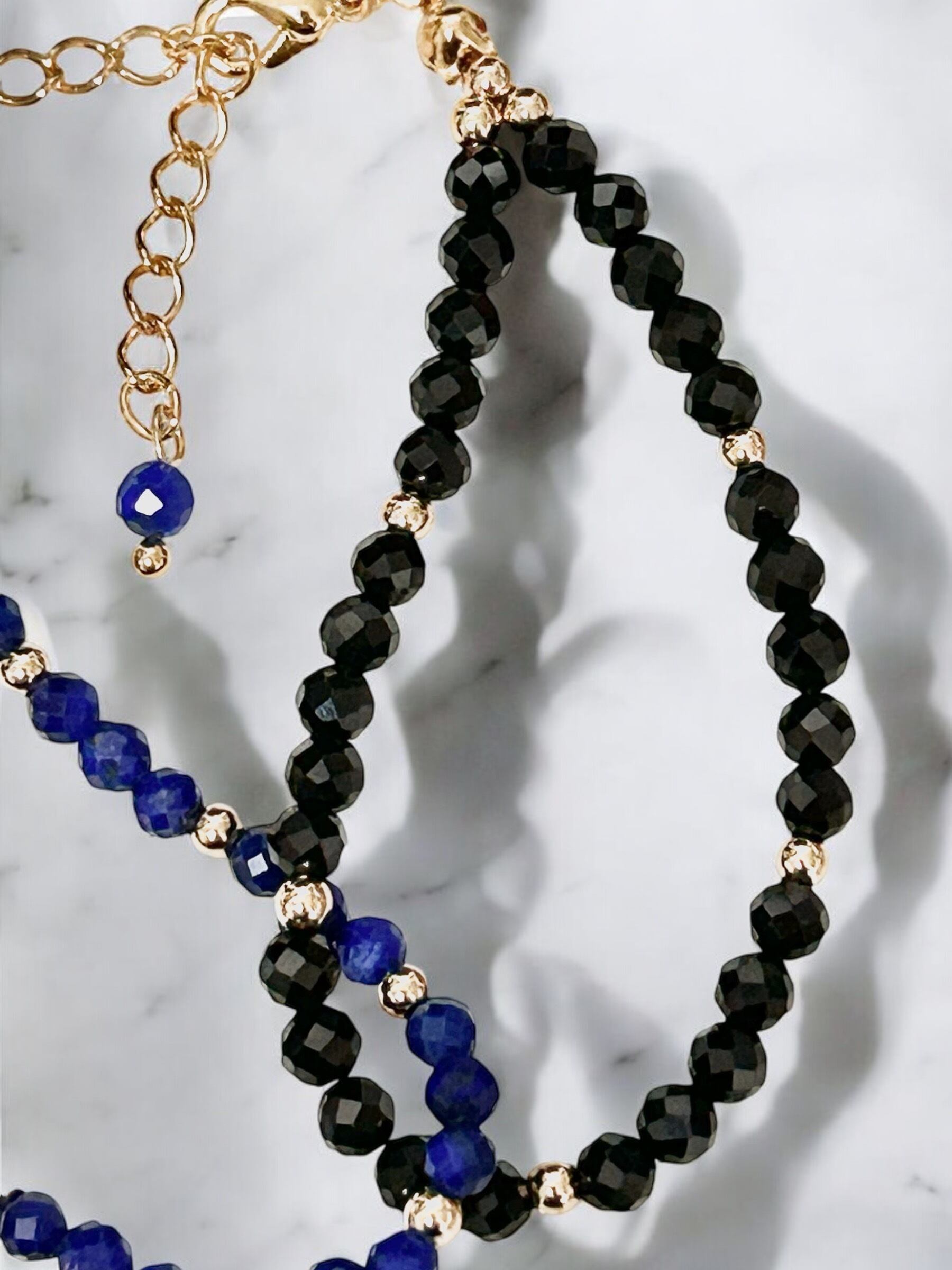 2連ラピスラズリ宝石質ブラックスピネルブレスレット